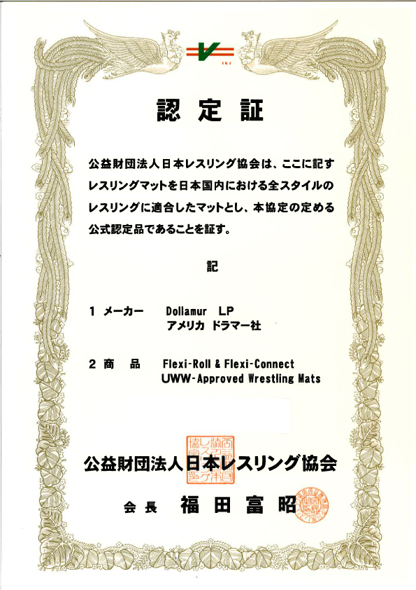 当社が販売する、米国ドラマー社のUWW公認レスリングマットは公益財団法人日本レスリング協会(JWF)のロゴがプリントされている公認商品です。